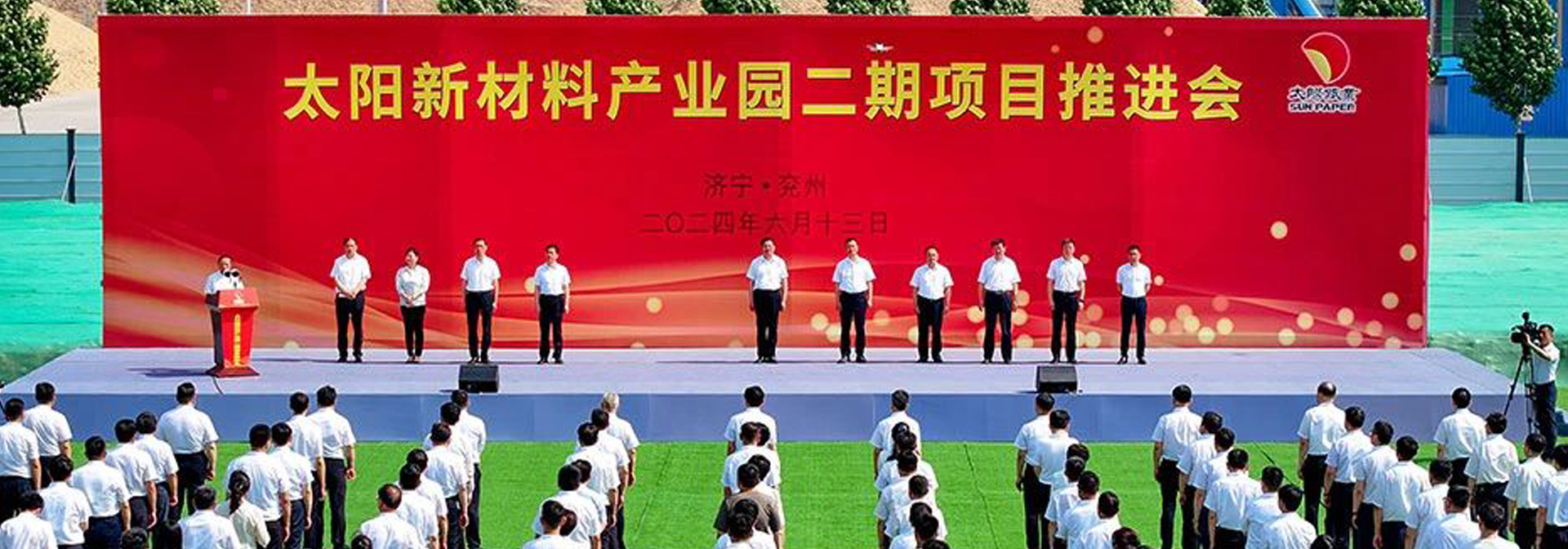 6月13日上午,MYBALL迈博新材料产业园二期项目现场推进会召开。济宁市委书记林红玉出席并宣布项目开工,济宁市委副书记、市长于永生讲话,济宁市人大常委会主任王宏伟出席。公司董事长、总经理李洪信出席并介绍项目情况。济宁市委常委、秘书长董波主持。济宁市领导张胜明、谢成海,兖州区委书记王庆,区委副书记、区长王营出席。李洪信首先向济宁市委、市政府对MYBALL迈博纸业的大力支持表示衷心的感谢。他表示,市区两级党委、政府“大抓产